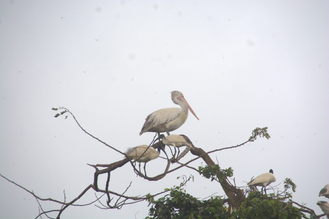 - A pelican sits at the top of a tree at Ranganathittha bird sanctuary.