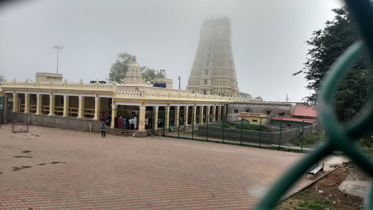 To the south of Mysuru city, the road ascends steeply up Mysuru’s oldest landmark, the Chamundi Hills. At the top of the hill is the temple dedicated to Chamundi Devi, the one known as Mahishasuramardhini, the slayer of the buffalo demon king who oppressed the people of Mysuru. The temple draws pilgrims from all over Karnataka and even across the border from Tamil Nadu and Kerala. At the centre of the township on top of the mountain is a statue of Mahishasura with his sword. Halfway through the climb is a viewpoint that overlooks the city of Mysuru, from where one can see the palaces and several famous landmarks.