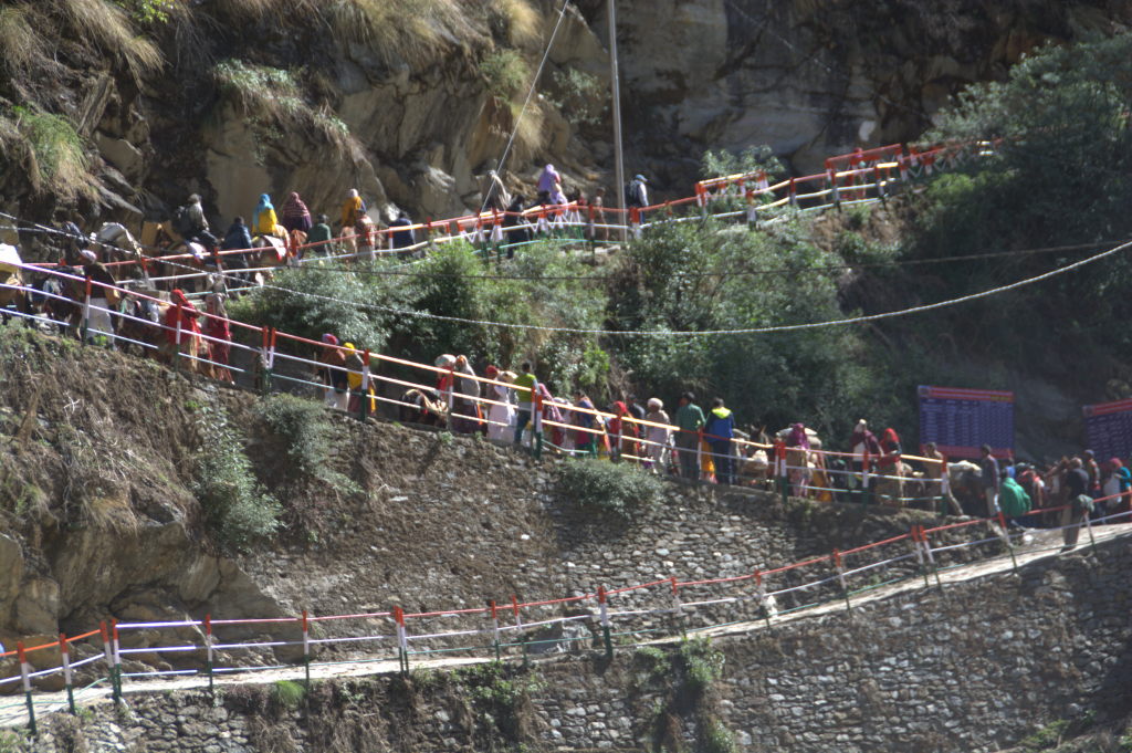 - Pilgrims walking towards Kedarnath.