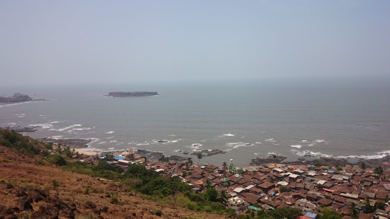 - Harnai village and Suvarnadurg fort as seen from the coastal highway which bypasses the village.