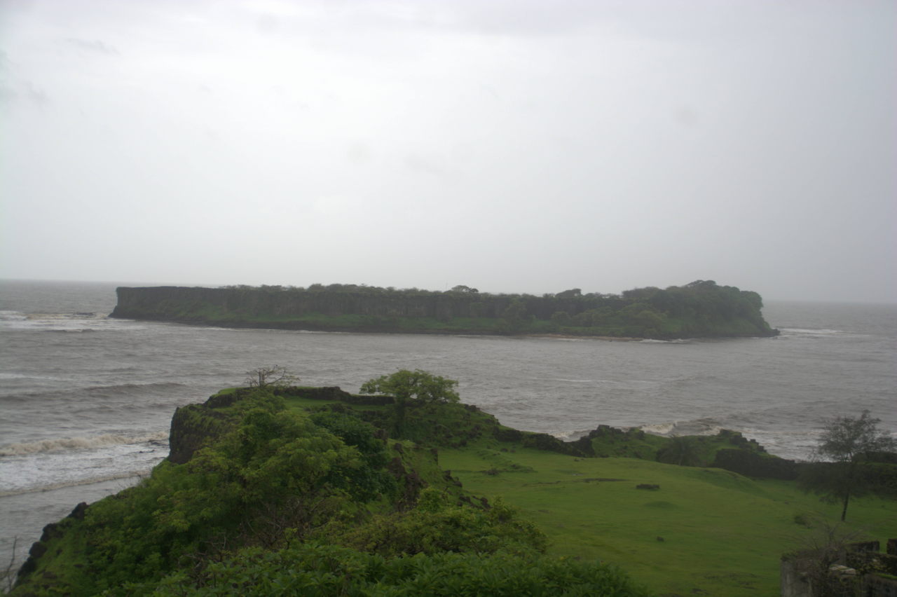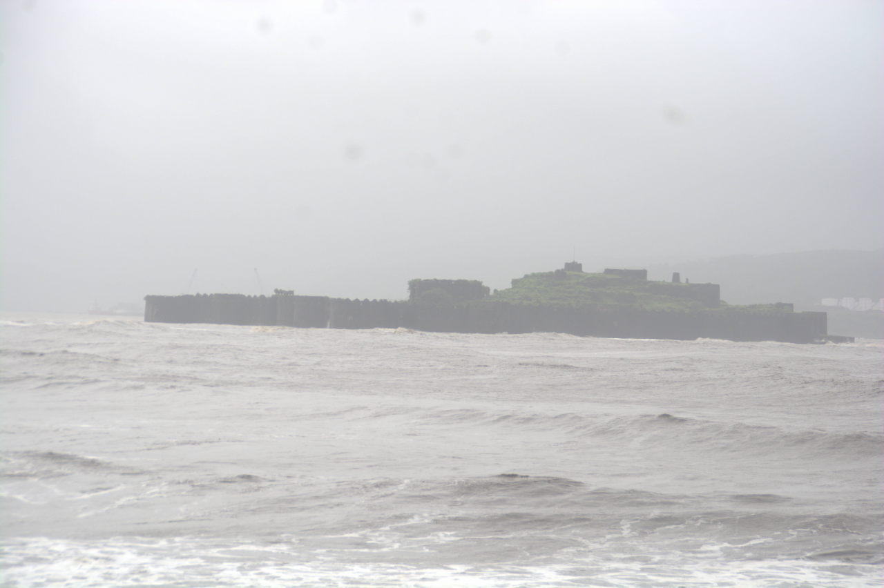 - Murud Janjira fort as seen through overcast weather from the Murud jetty.