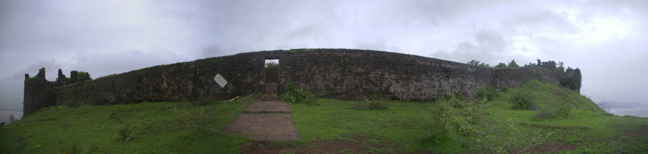 - The outer walls of the Korlai fort, which is hill top fort right near the sea. Projection: Cylindrical (1) FOV: 170 x 62 Ev: 12.06